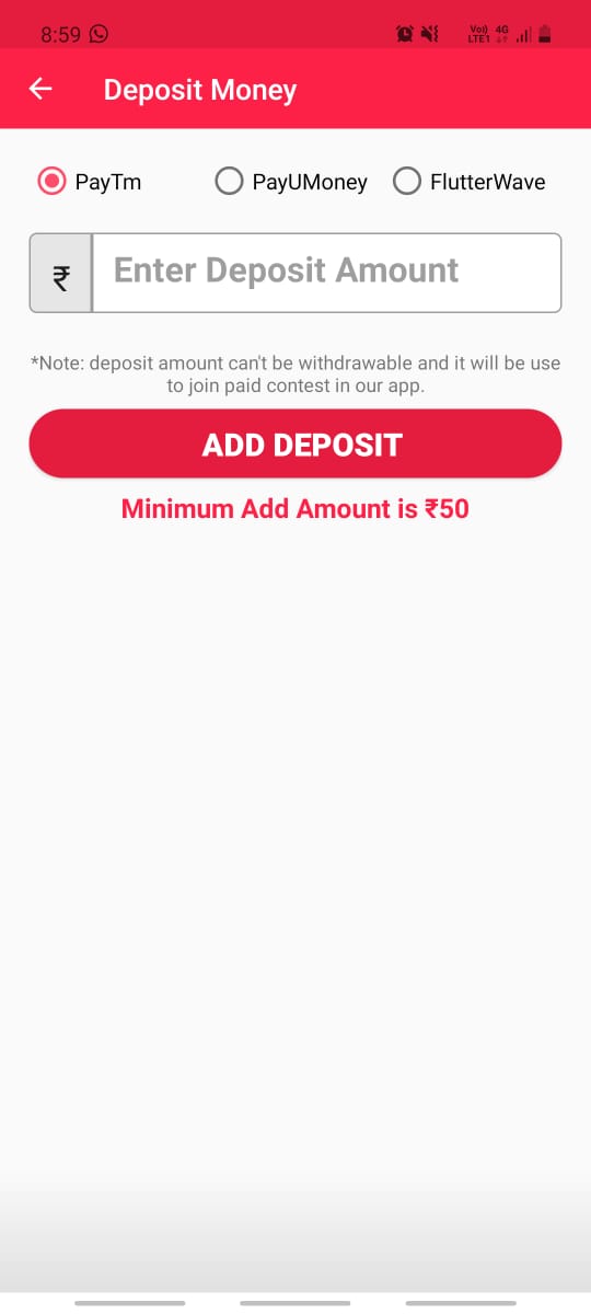 Go to more section and click on Deposit Cash, Add cash Minimum 50 Rupees from Paytm or UPI - How to withdraw Money?